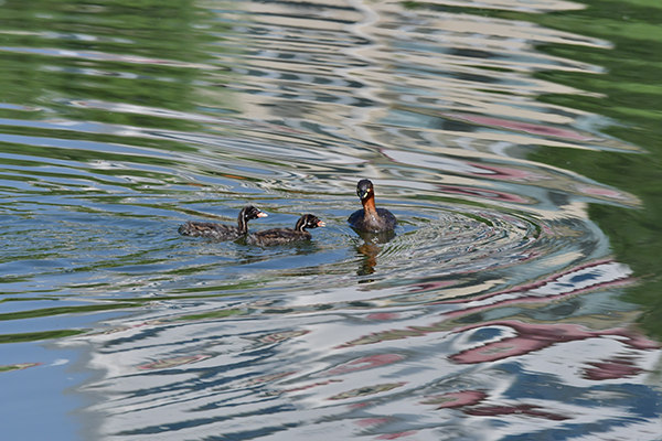 Little grebes glide across the waters of the Taohe River in Yangquan. [Photo/Yangquan Daily]